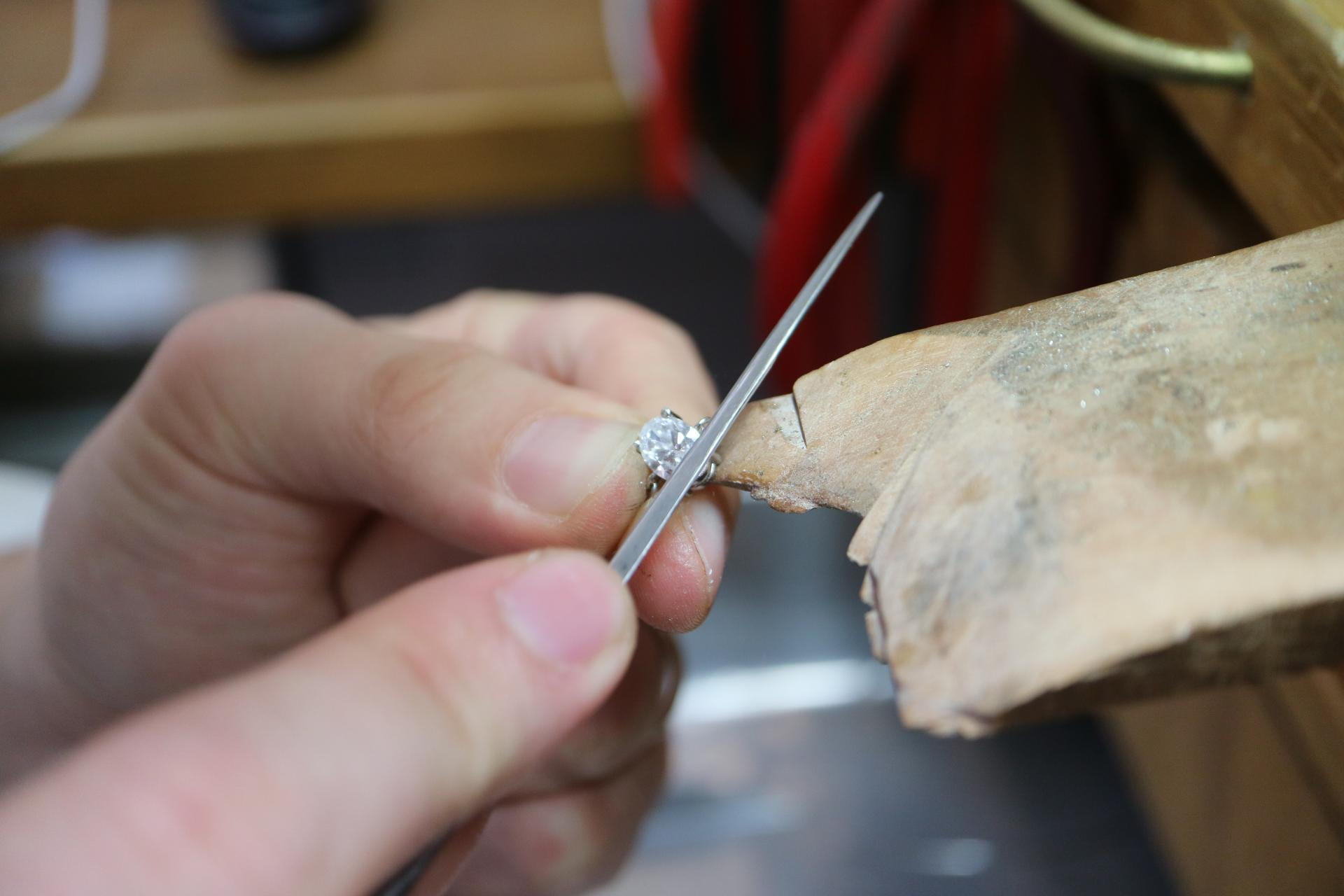 금속을 녹여 주얼리로 만들고 스톤이 세팅되는 과정을