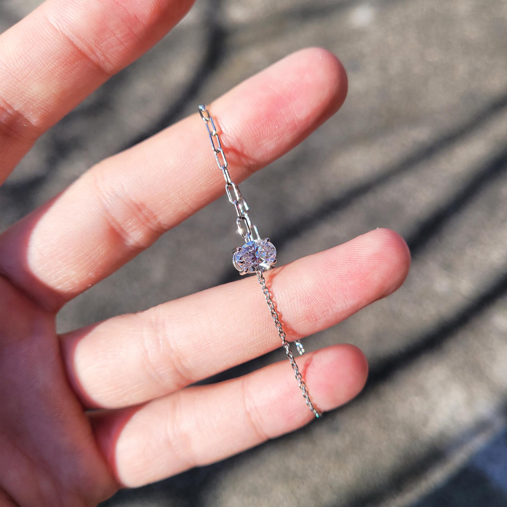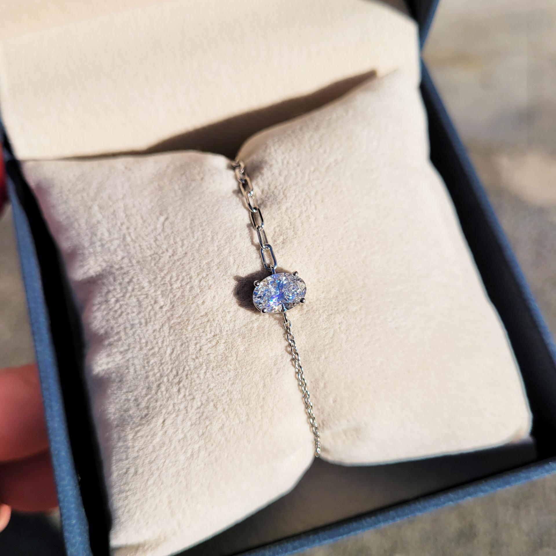 IGI 1ct 오벌 컷 랩그로운 다이아몬드 체인 팔찌