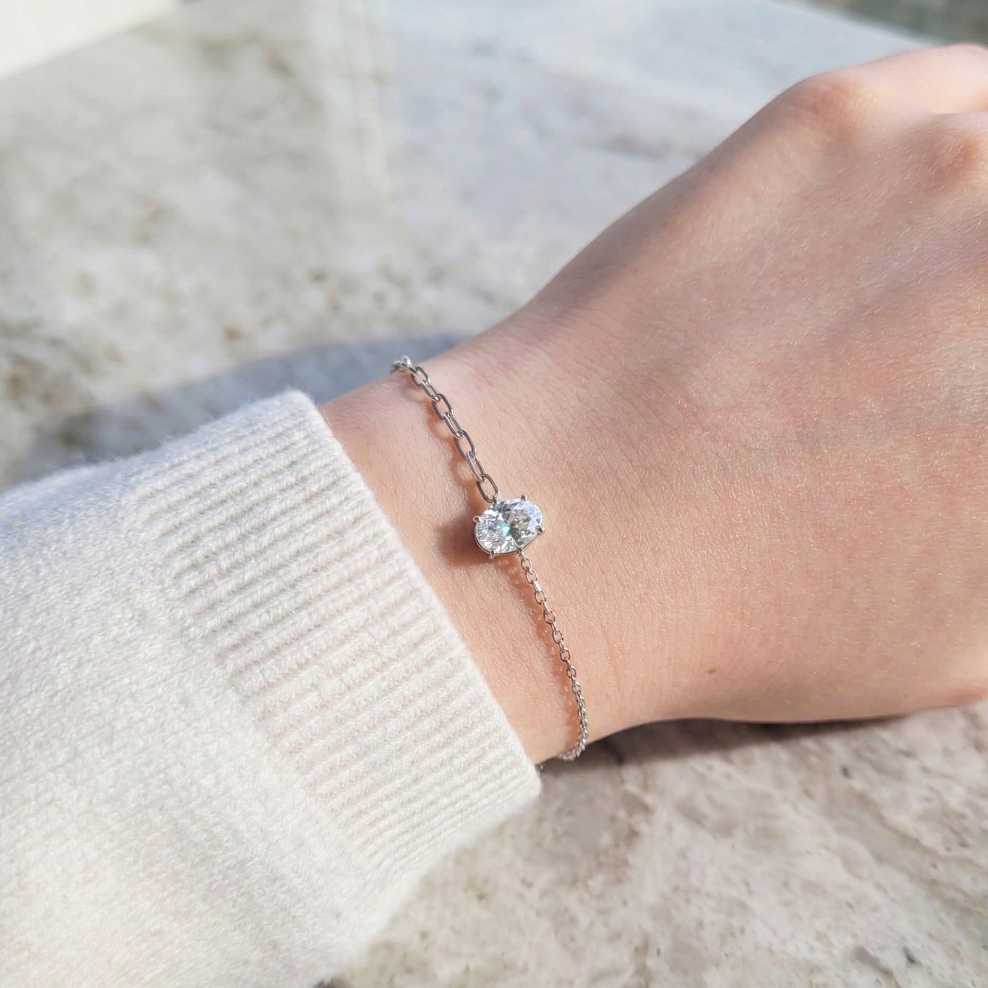 Pt950 플래티넘 & IGI 1ct 오벌 컷 랩그로운 다이아몬드 팔찌