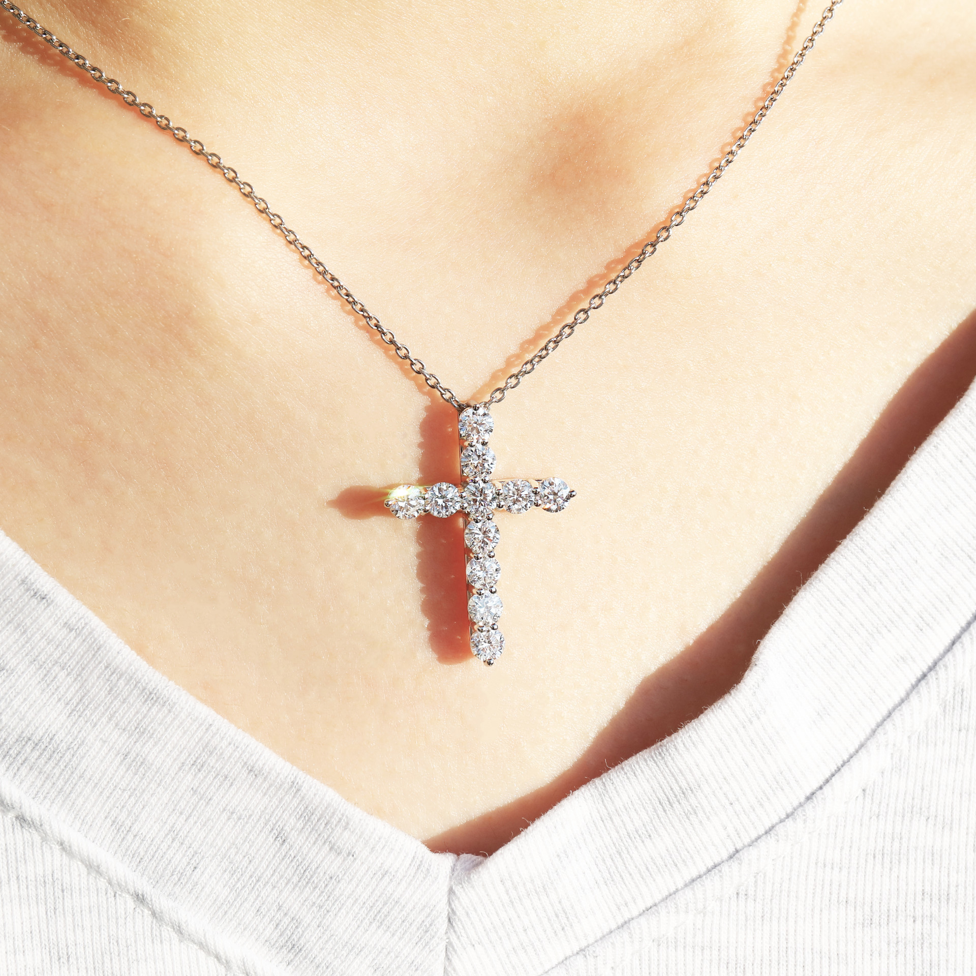 최상급 다이아몬드의 아름다운 반짝임, 정교한 핸드메이드 세팅으로 완성된 아반주얼리의 크로스 목걸이는 언제 어디서나 아름다운 존재감을 느껴보실 수 있습니다.