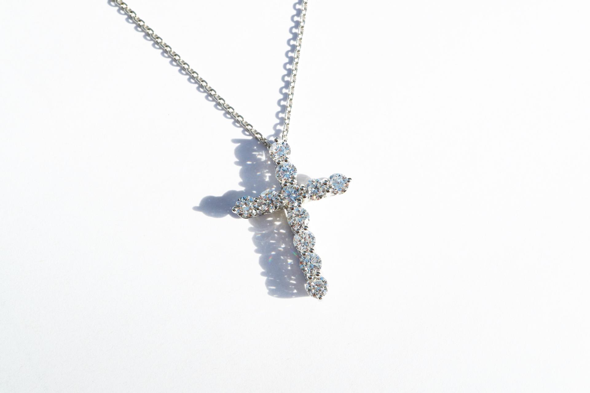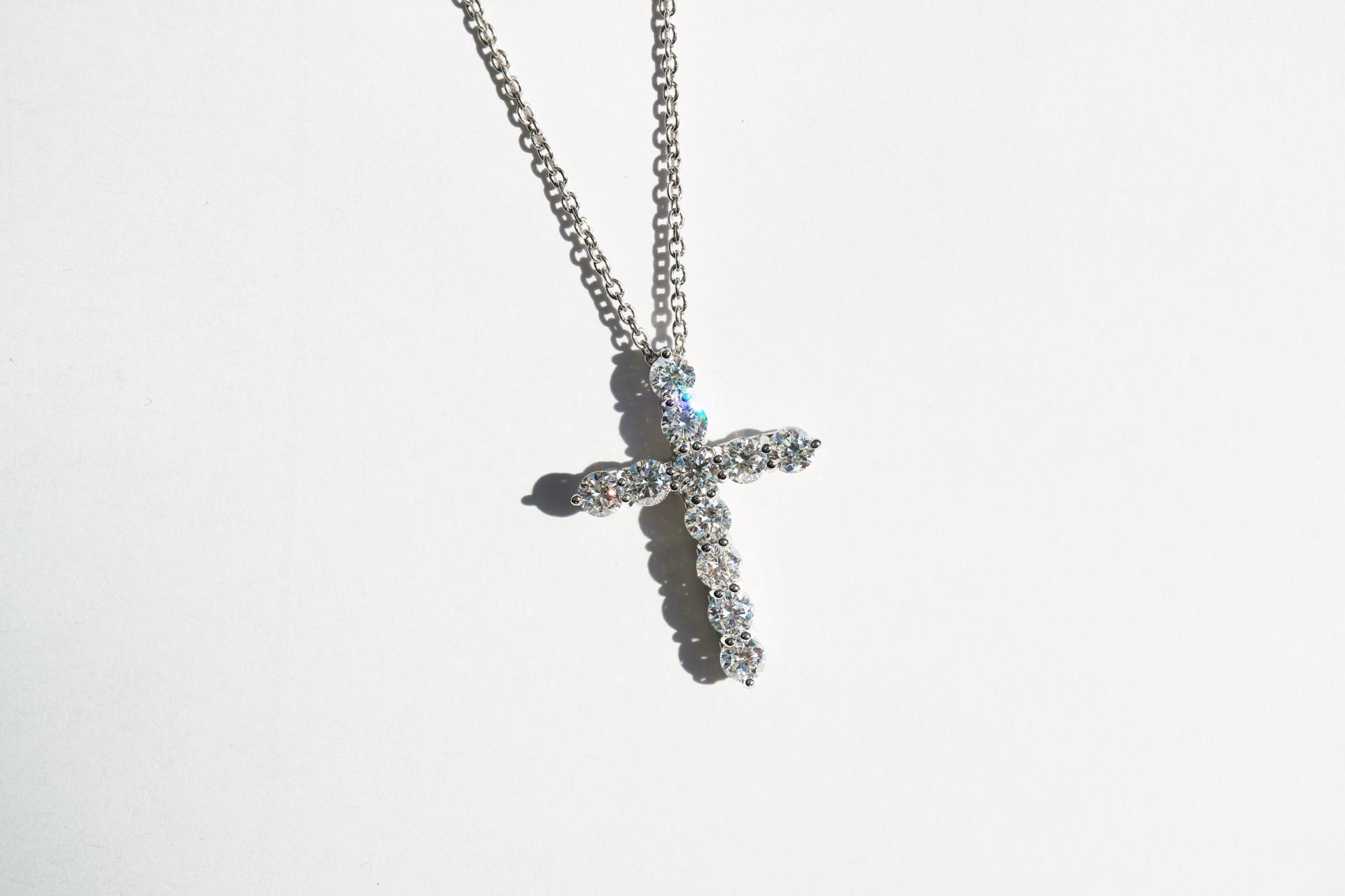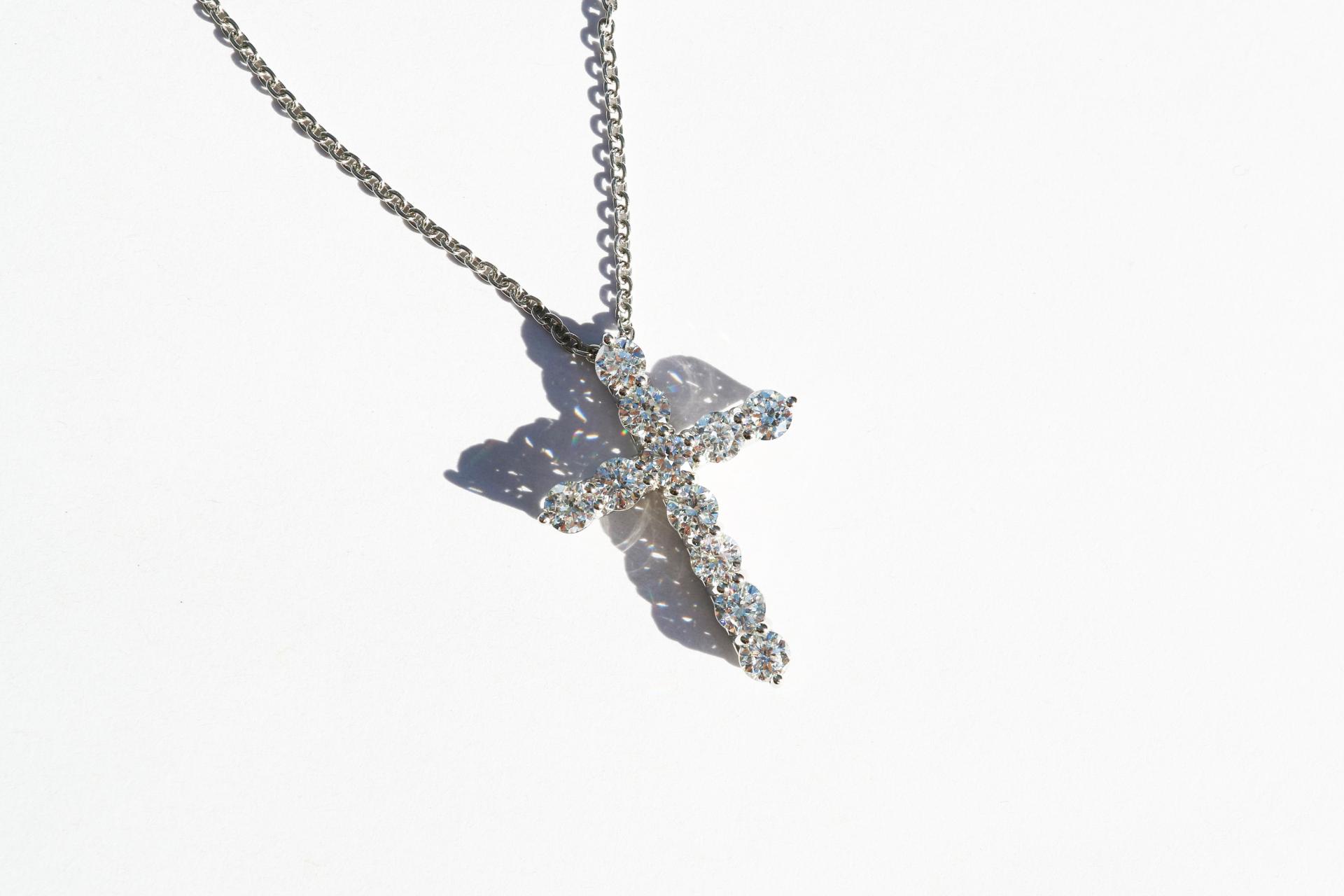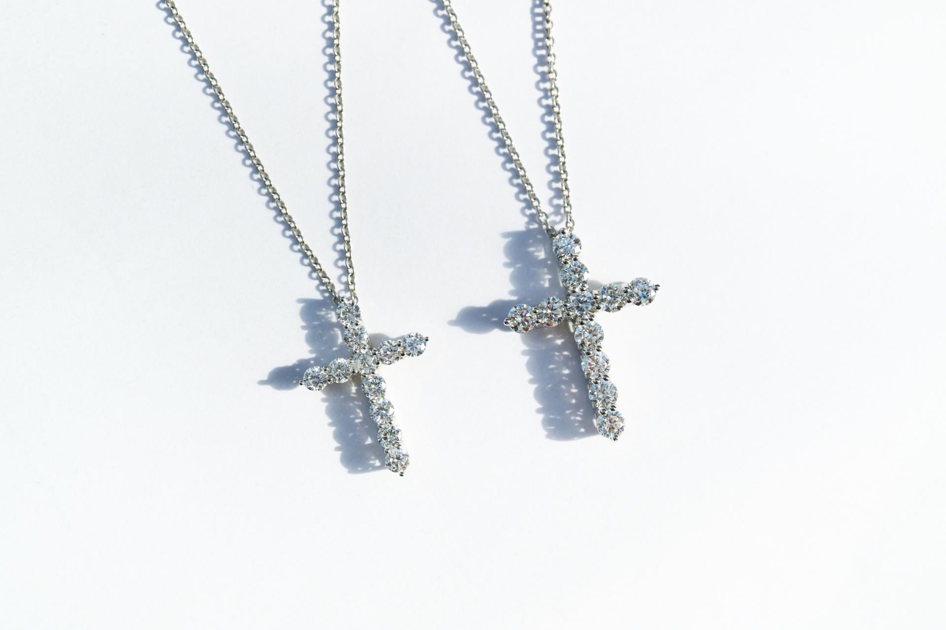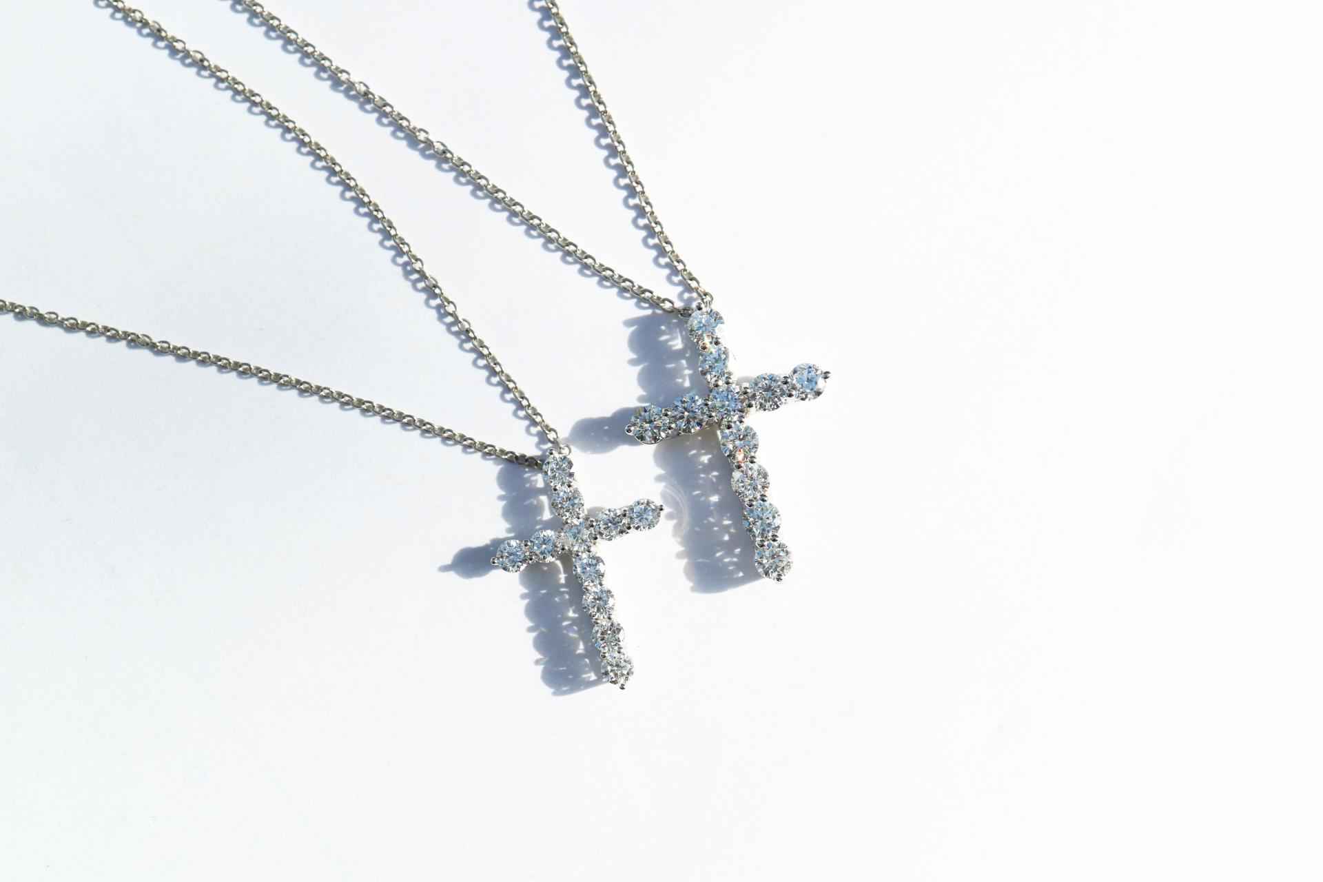 정교한 다이아몬드 세팅으로 완성되는 아이코닉한 크로스 디자인.