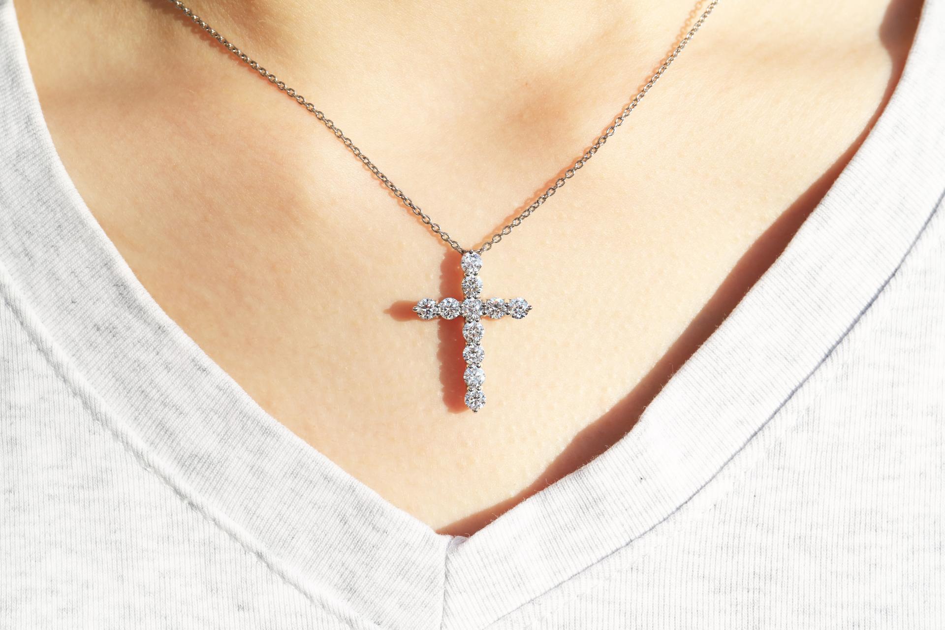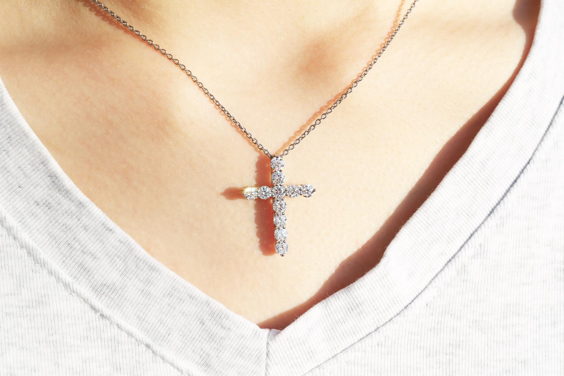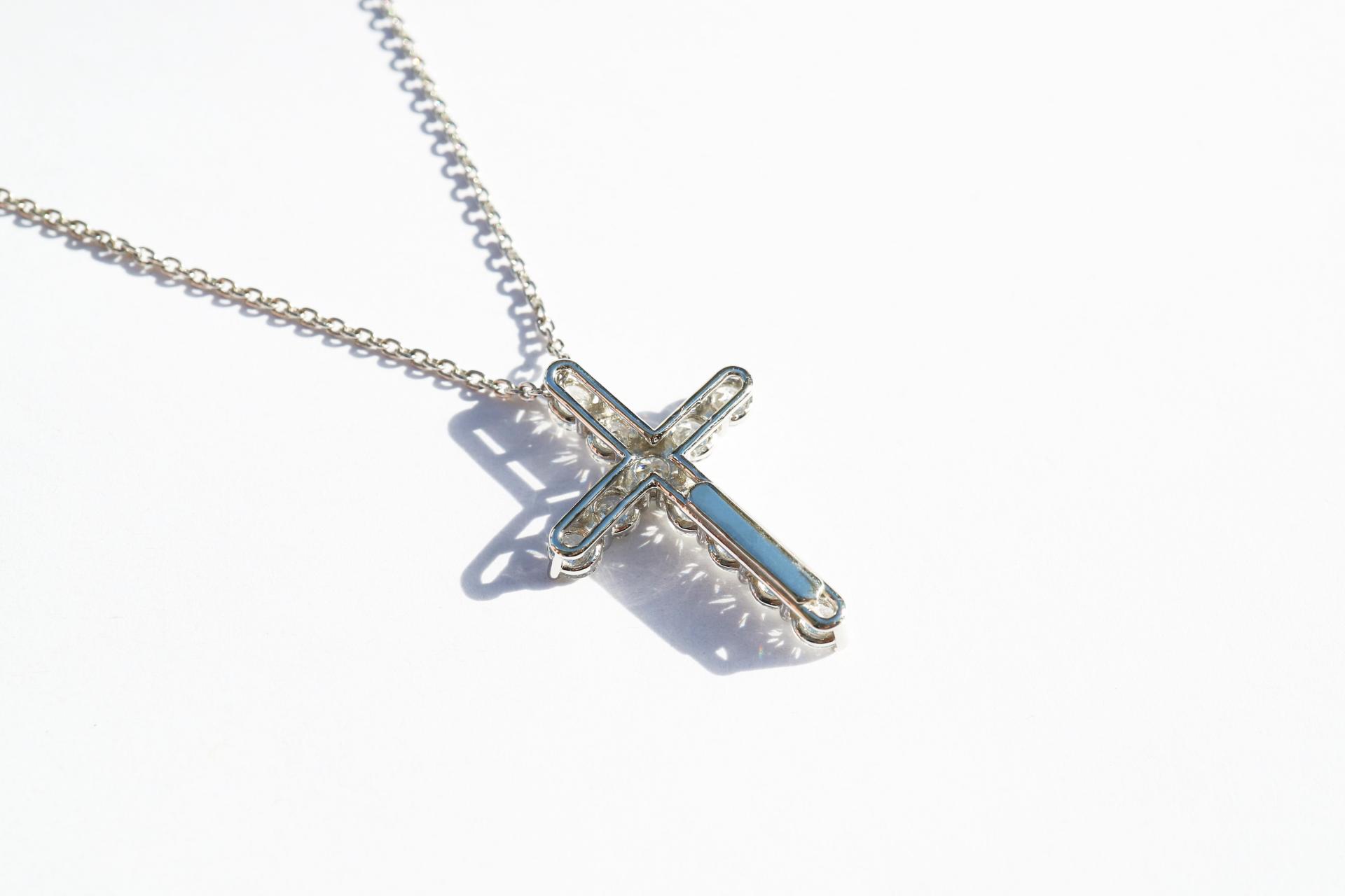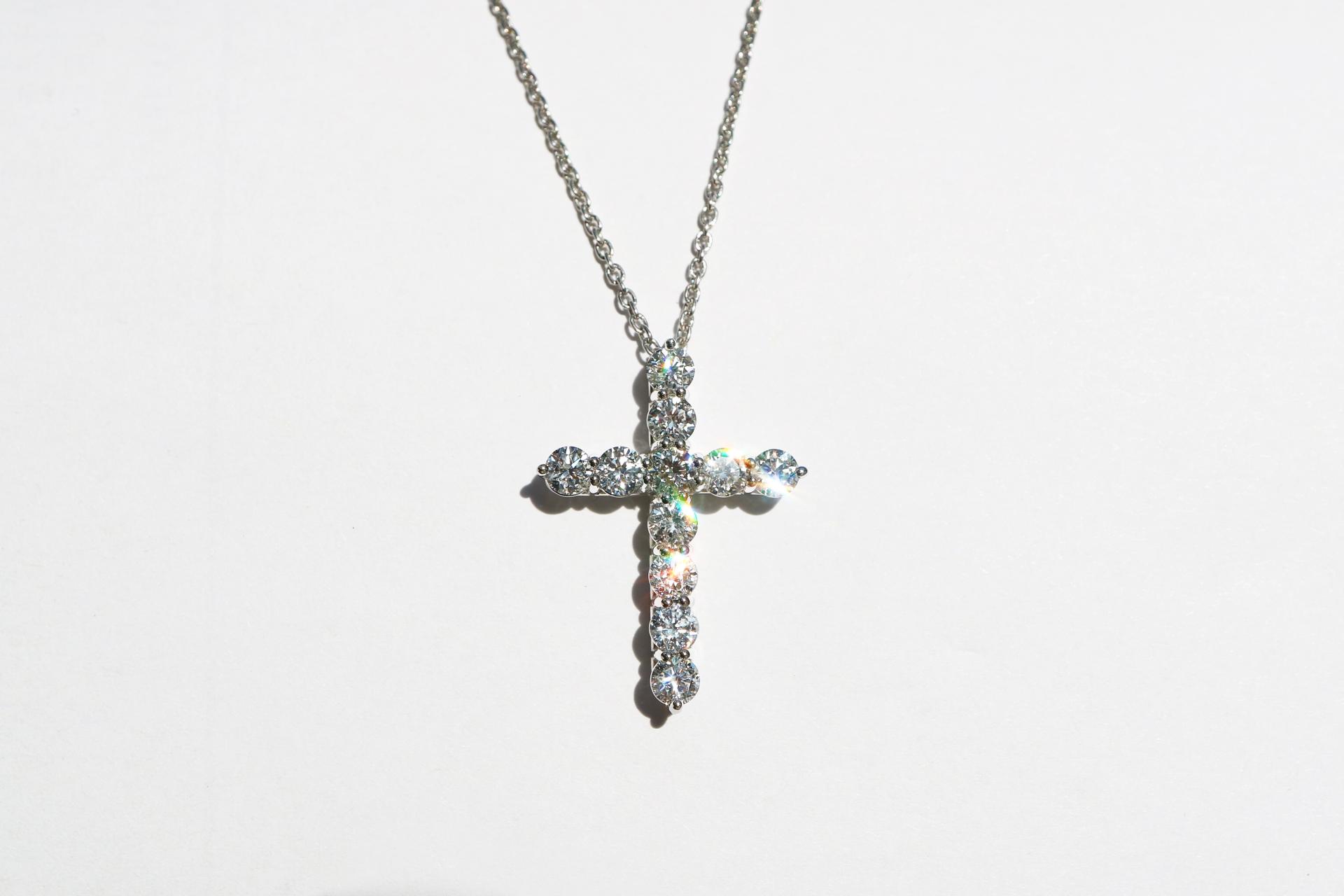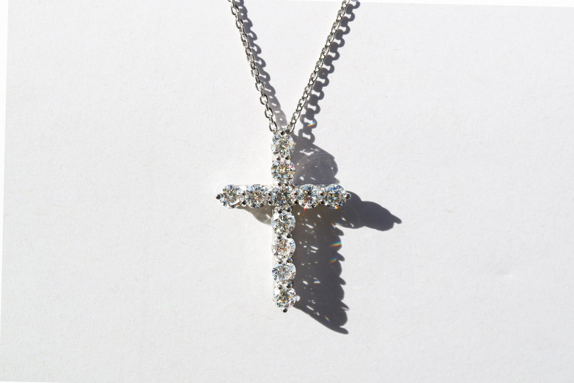 정교한 다이아몬드 세팅으로 완성되는 아이코닉한 크로스 디자인.