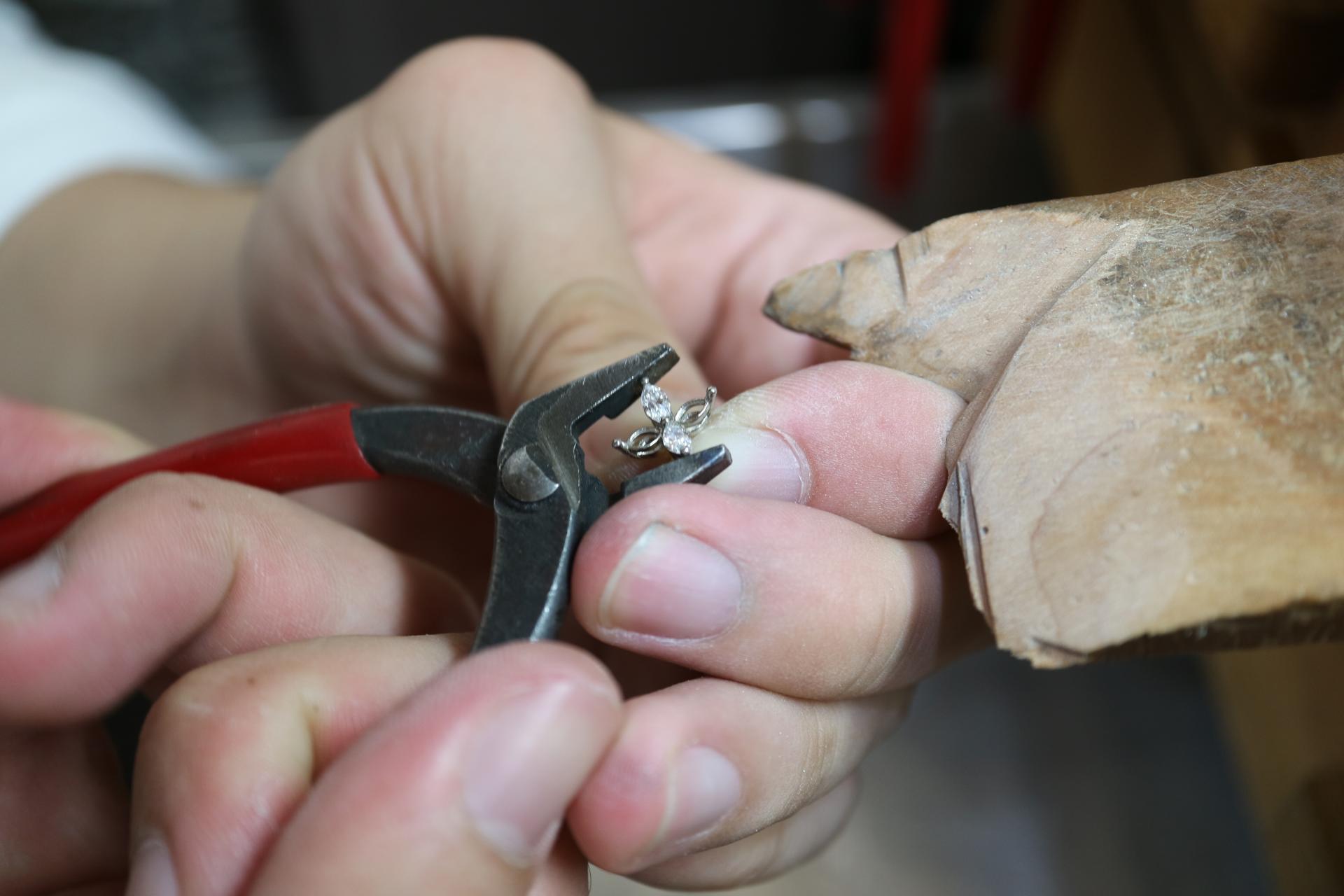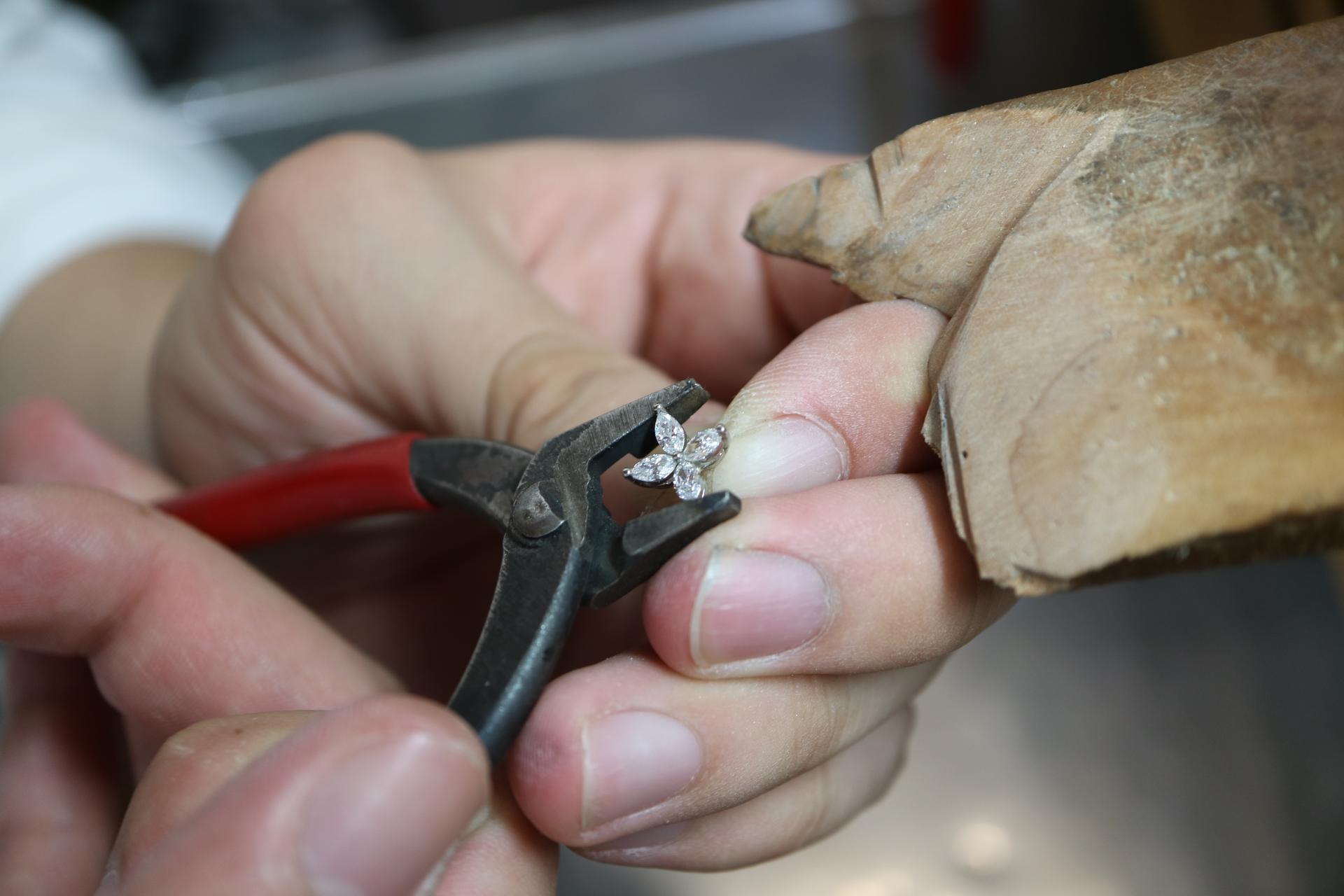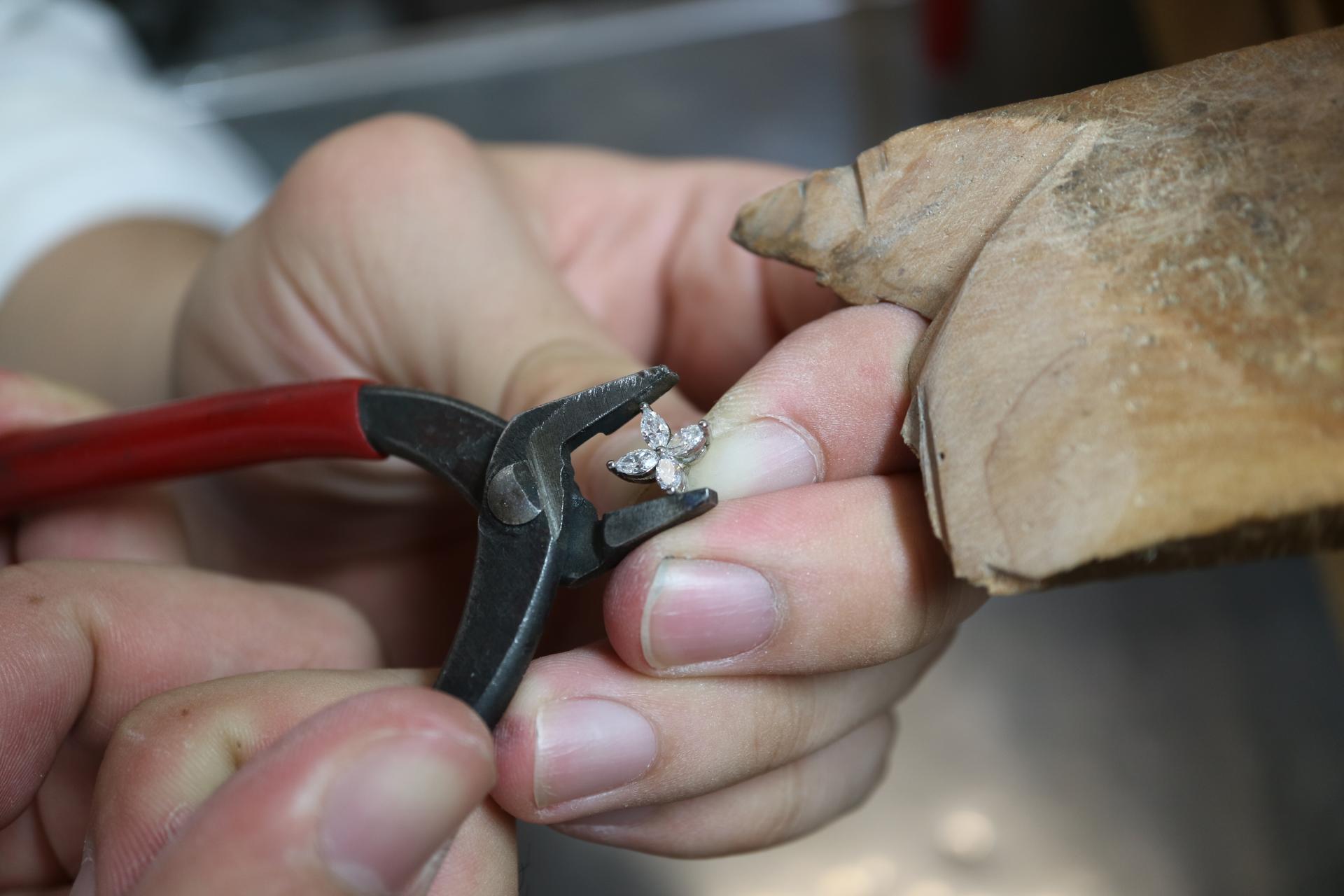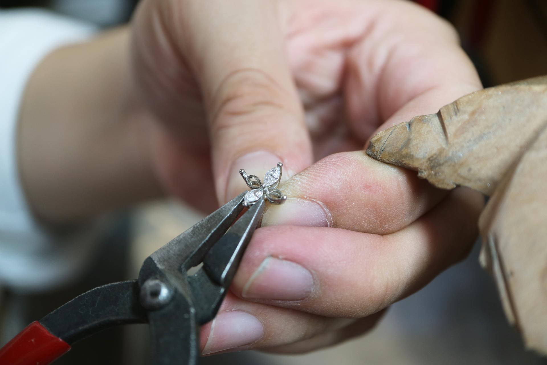 금속을 녹여 주얼리로 만들고 스톤이 세팅되는 과정을