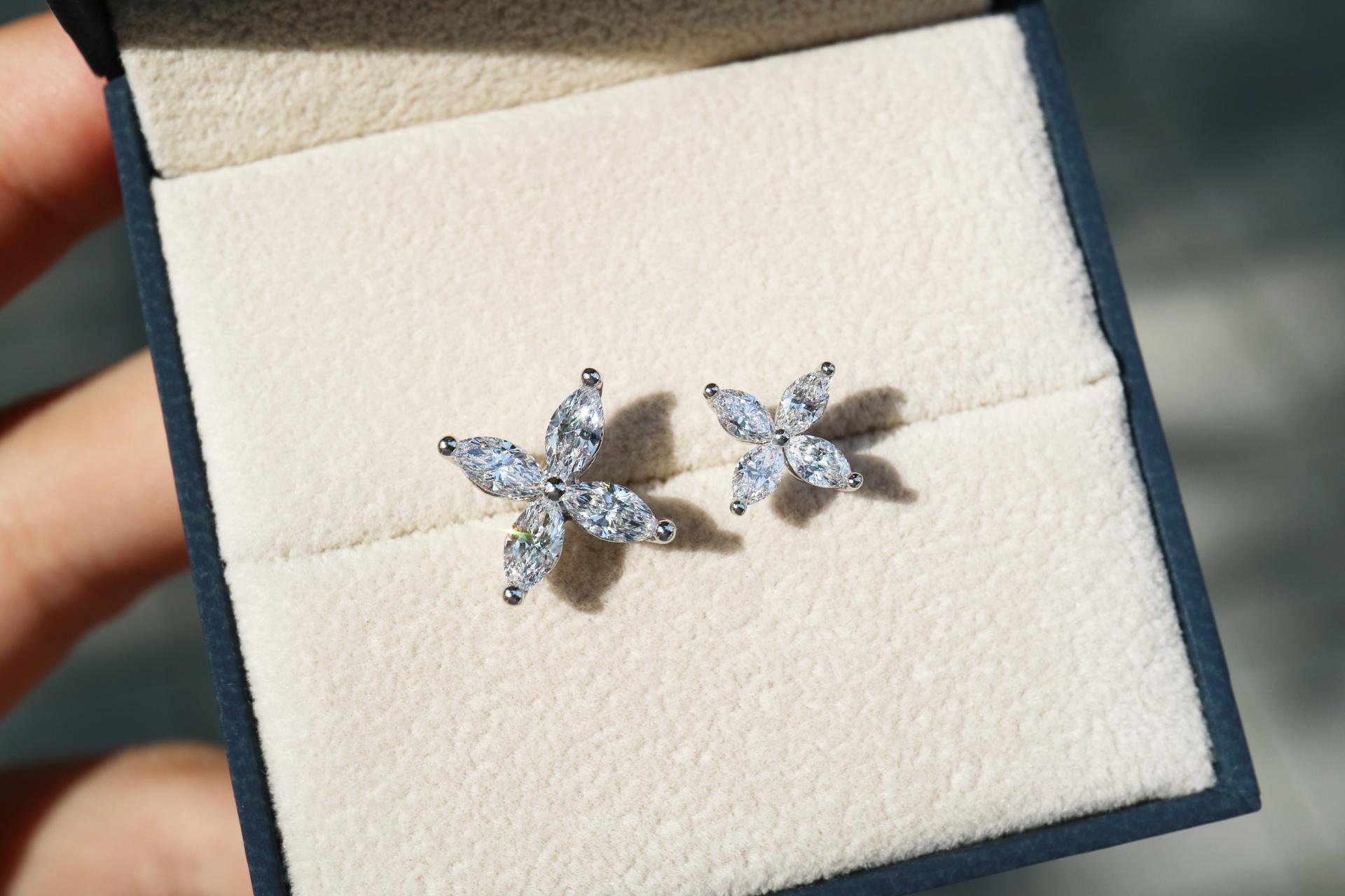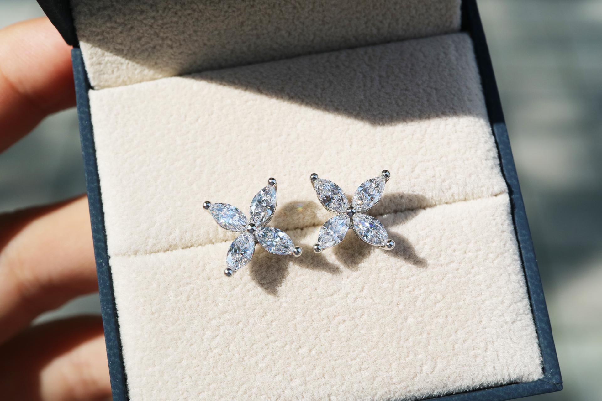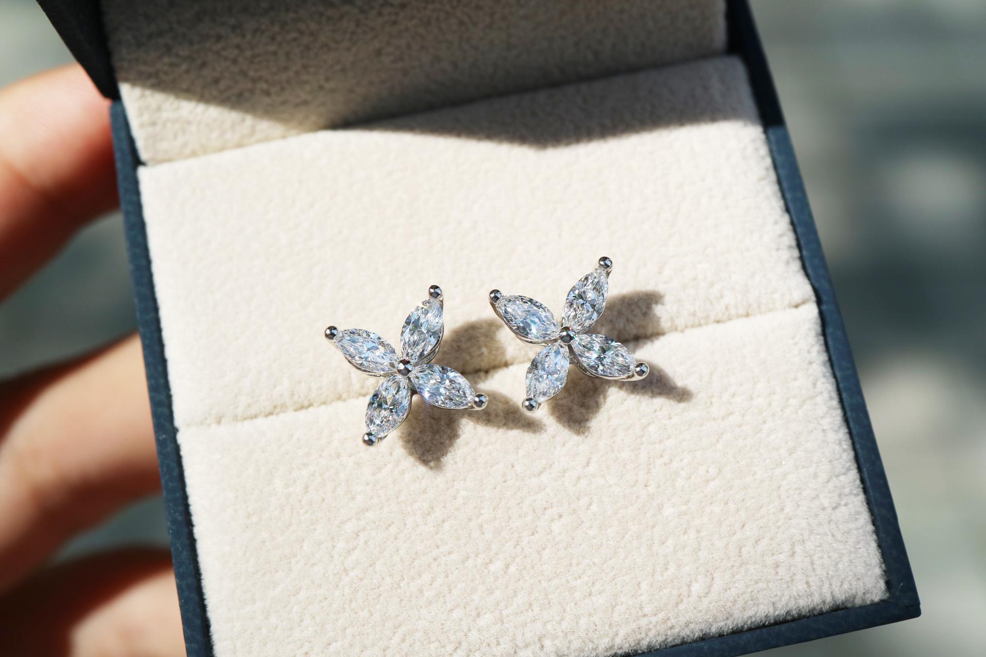 왼쪽 : 마퀴즈 컷 다이아몬드 귀걸이 L사이즈
