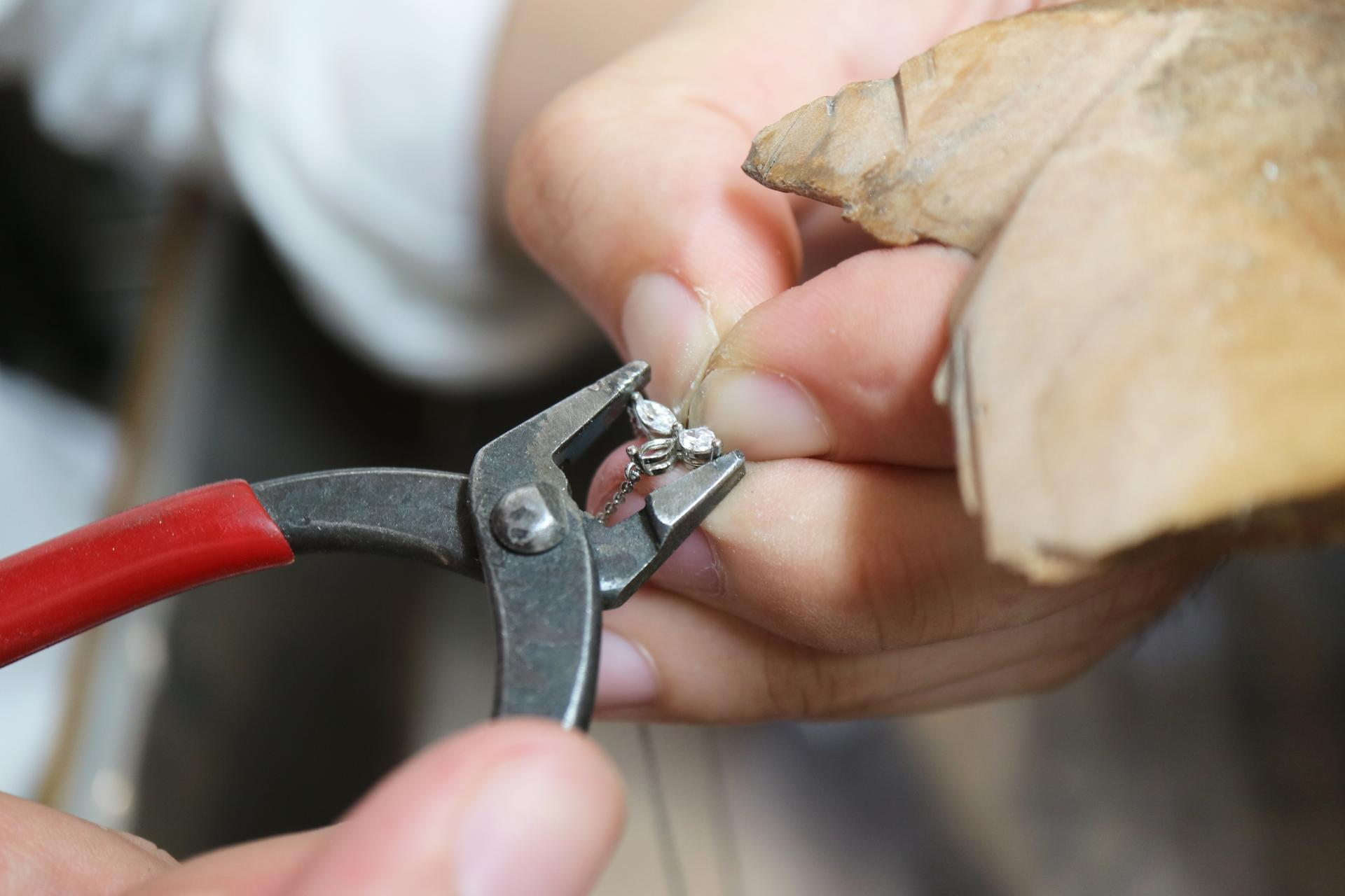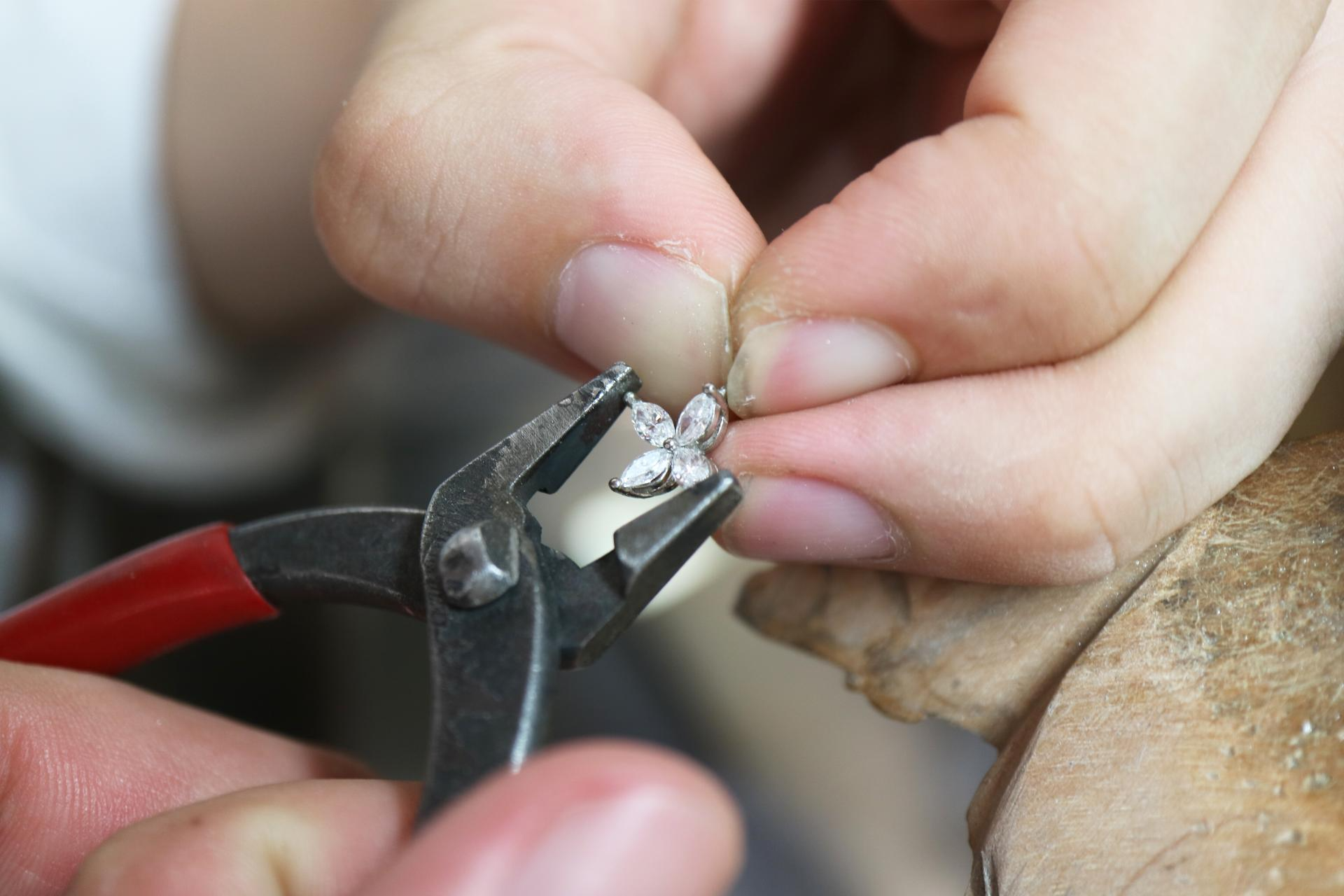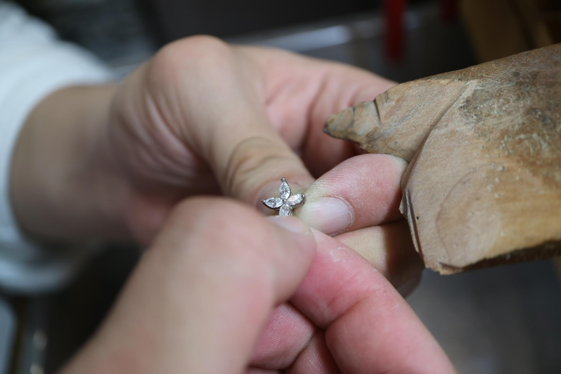 금속을 녹여 주얼리로 만들고 스톤이 세팅되는 과정을