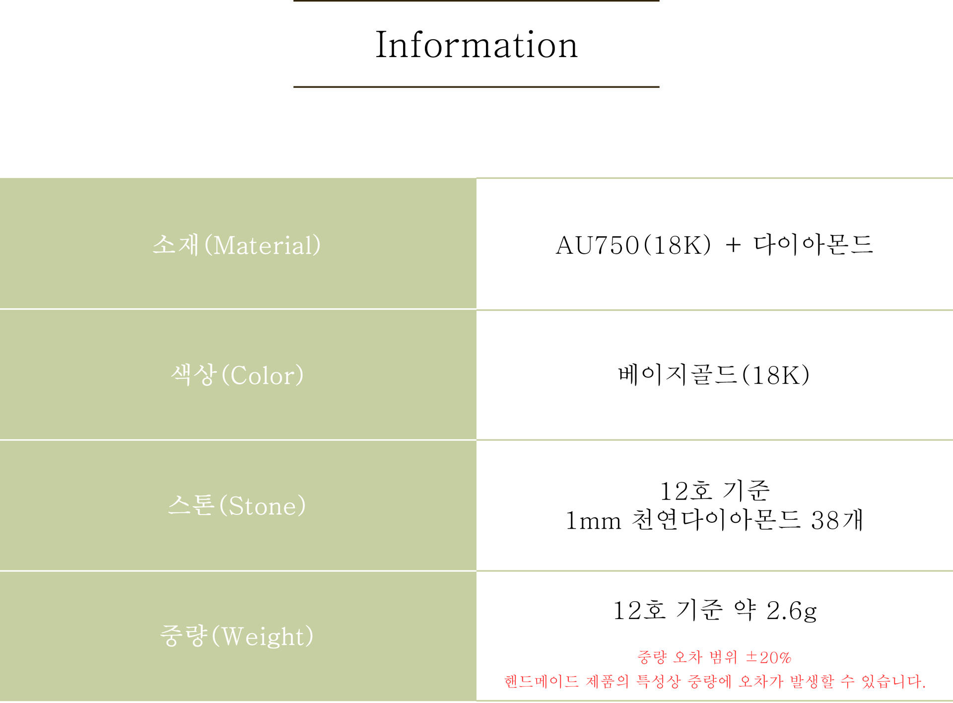 중량 | 아반주얼리에서 만들어지는 귀금속 제품은 핸드메이드 제품들로 표기 중량과 오차(± 10%)가 발생할 수 있습니다. *각 제품의 중량은 상세 페이지 참고 |