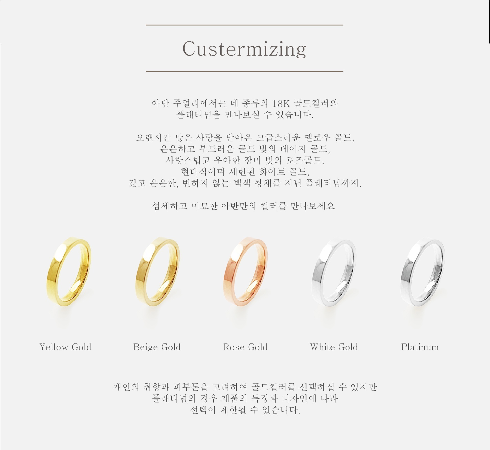 중량 | 아반주얼리에서 만들어지는 귀금속 제품은 핸드메이드 제품들로 표기 중량과 오차(± 10%)가 발생할 수 있습니다. *각 제품의 중량은 상세 페이지 참고 |